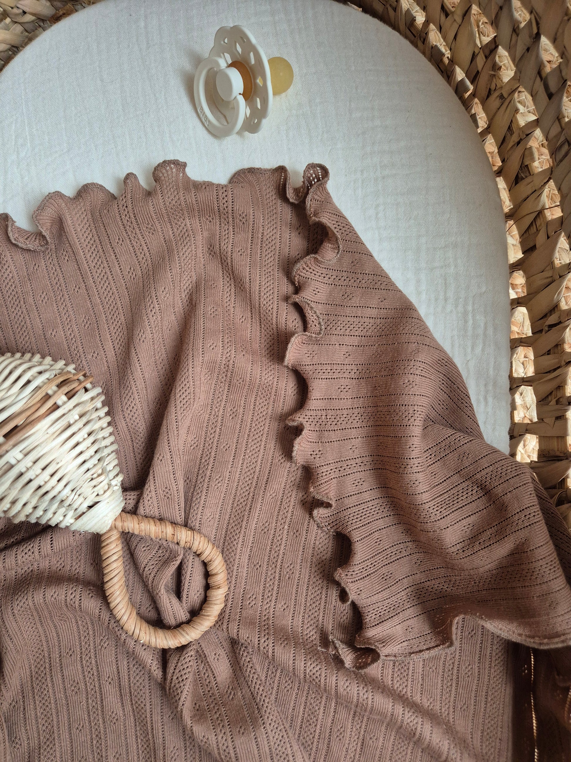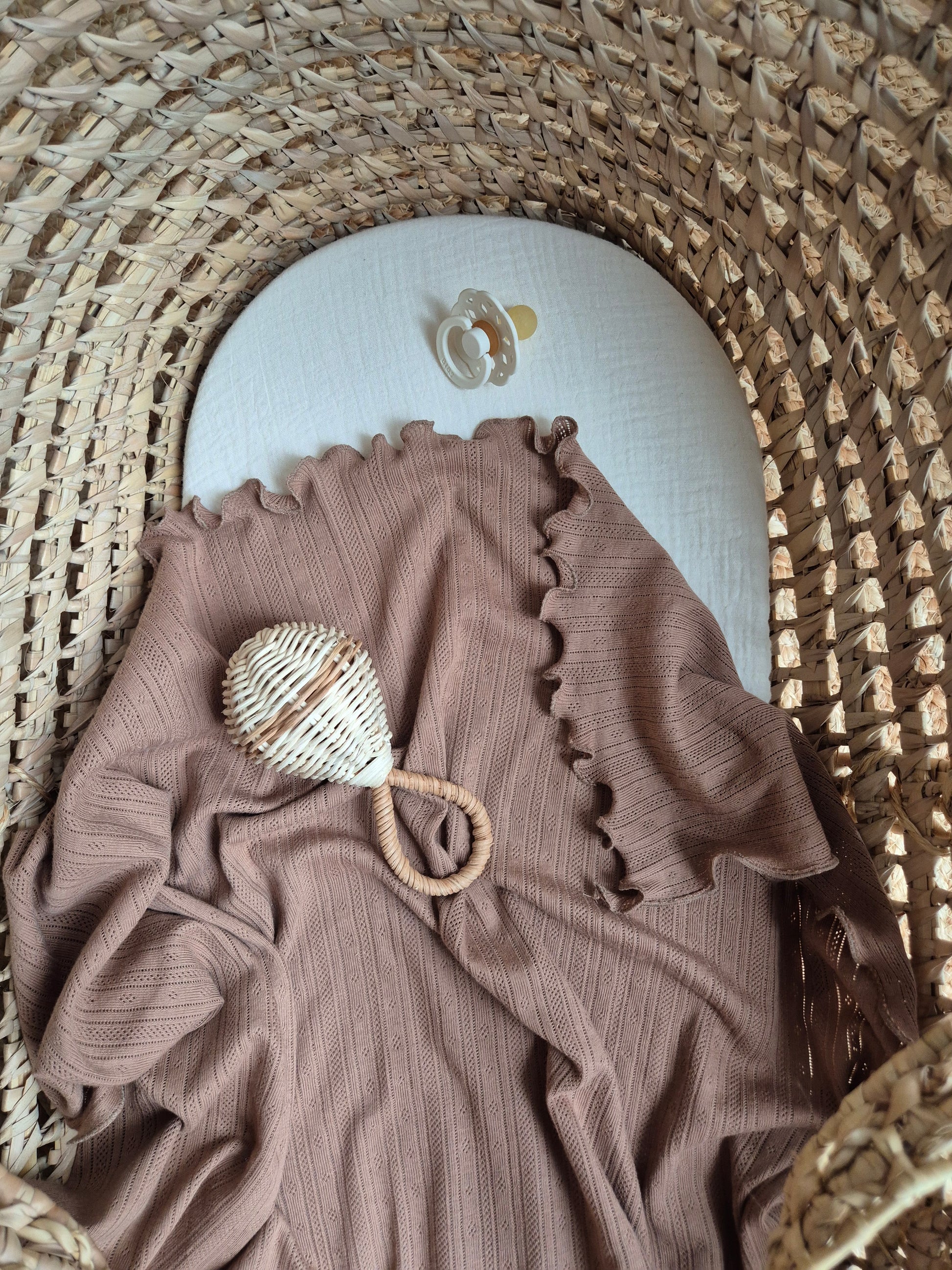 Warm and enveloping, the blanket is the perfect companion for baby, on a walk or at home. Much more than just an accessory: it’s a cocoon of reassuring softness.