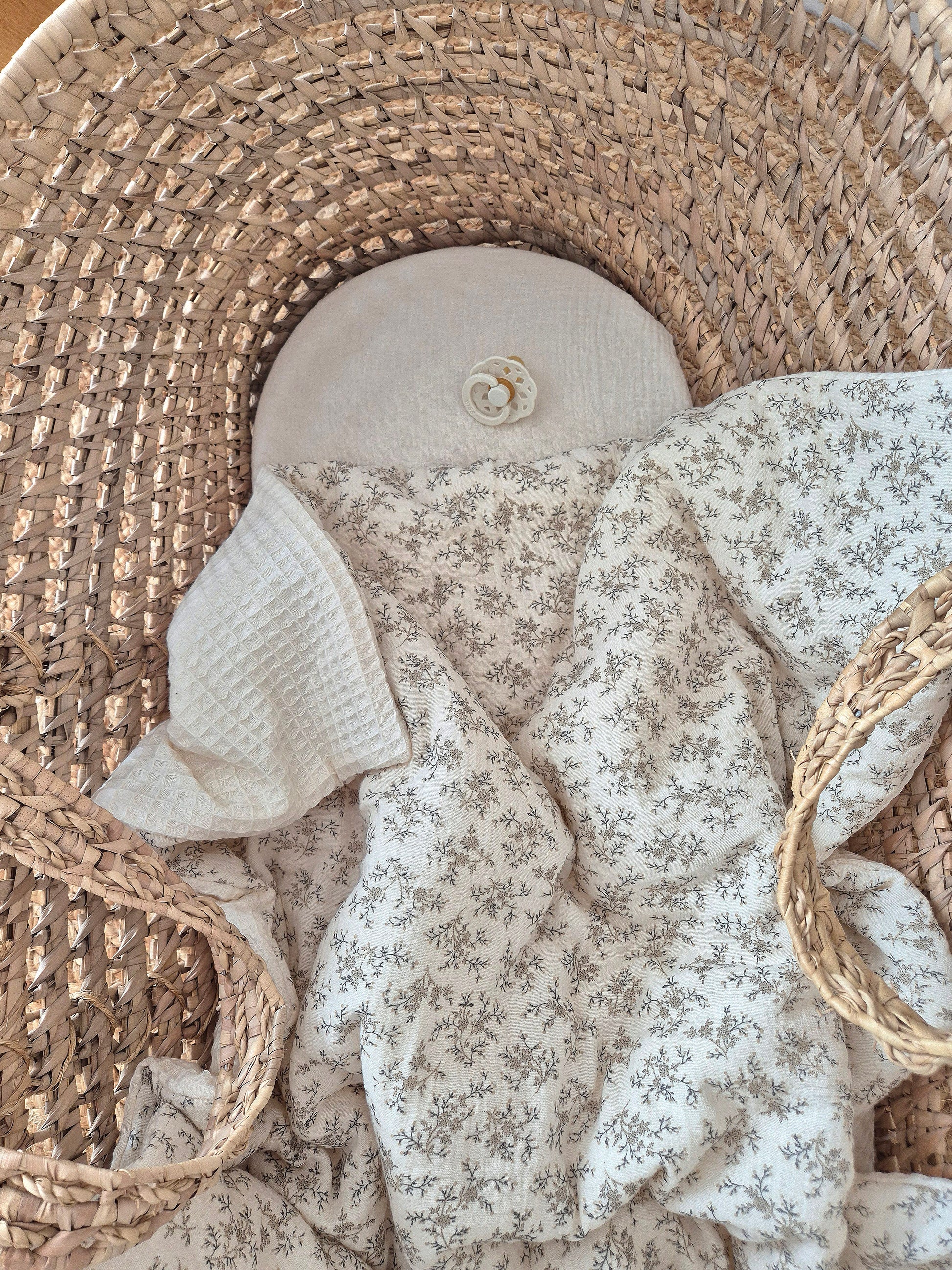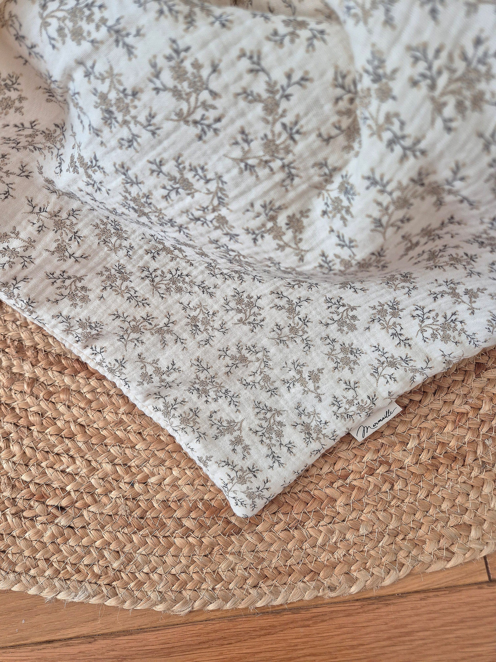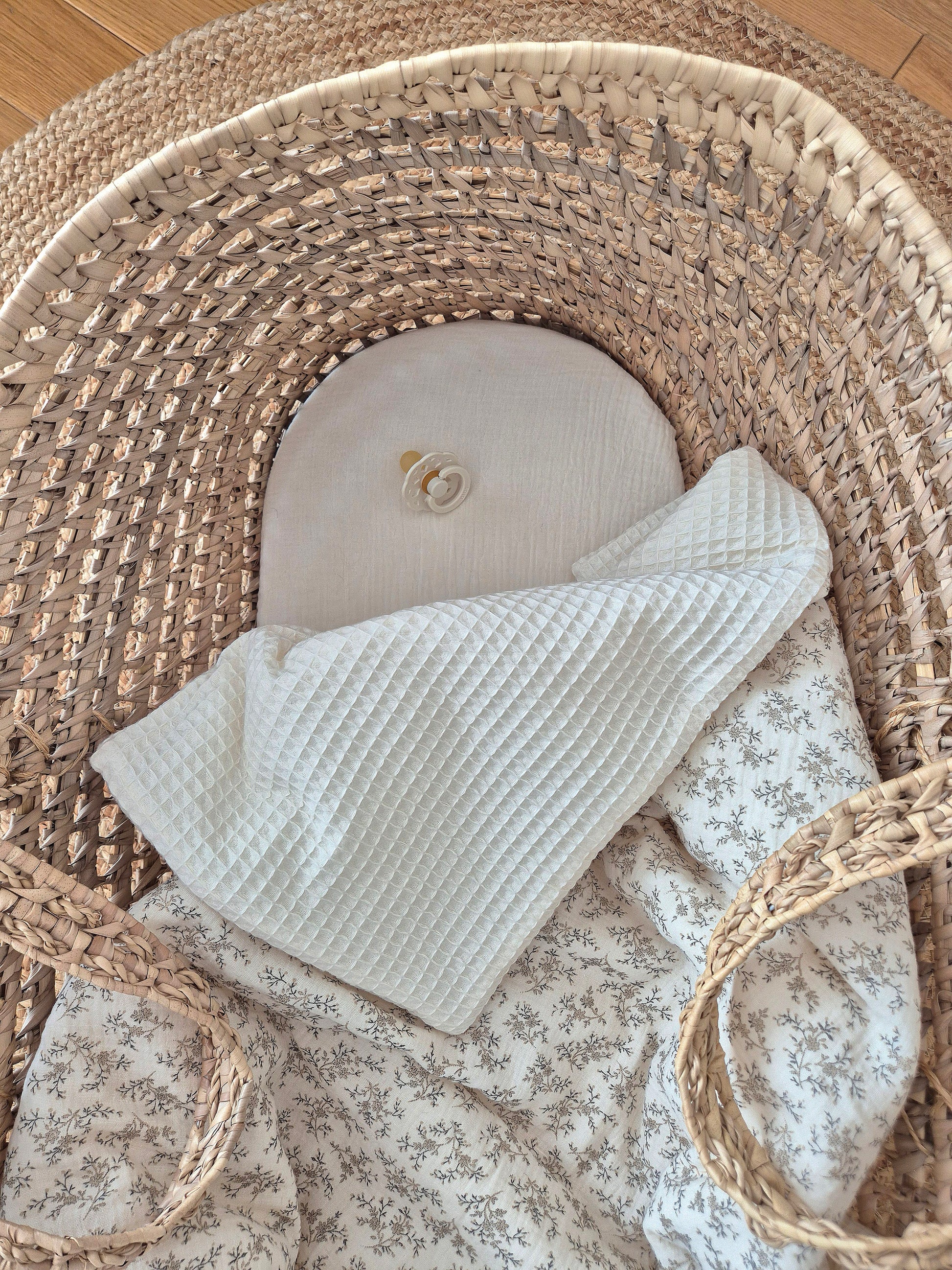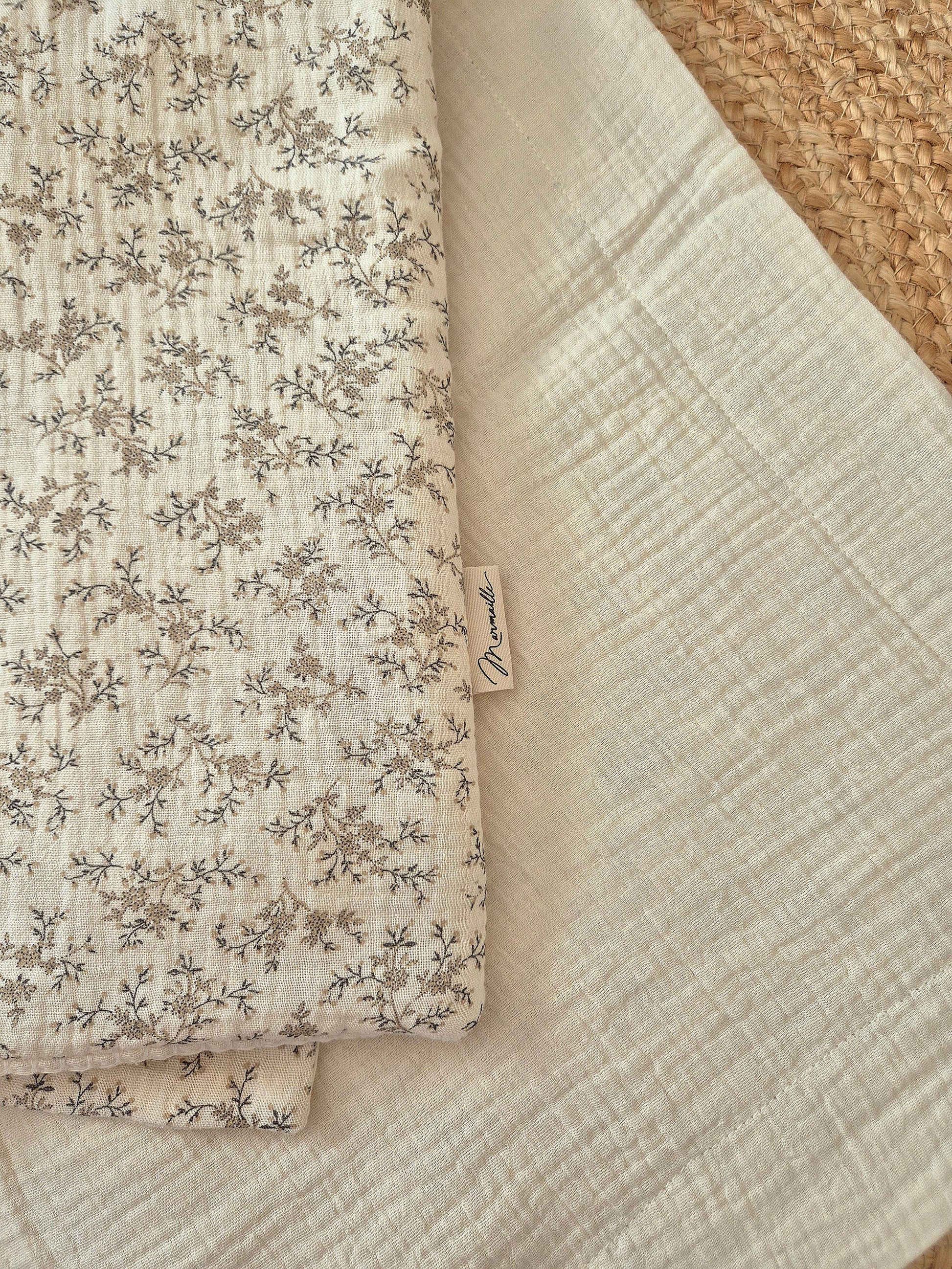 Chaleureuse et enveloppante, la couverture est le compagnon parfait pour bébé, en balade ou à la maison. Bien plus qu’un simple accessoire : c’est un cocon de douceur rassurant.