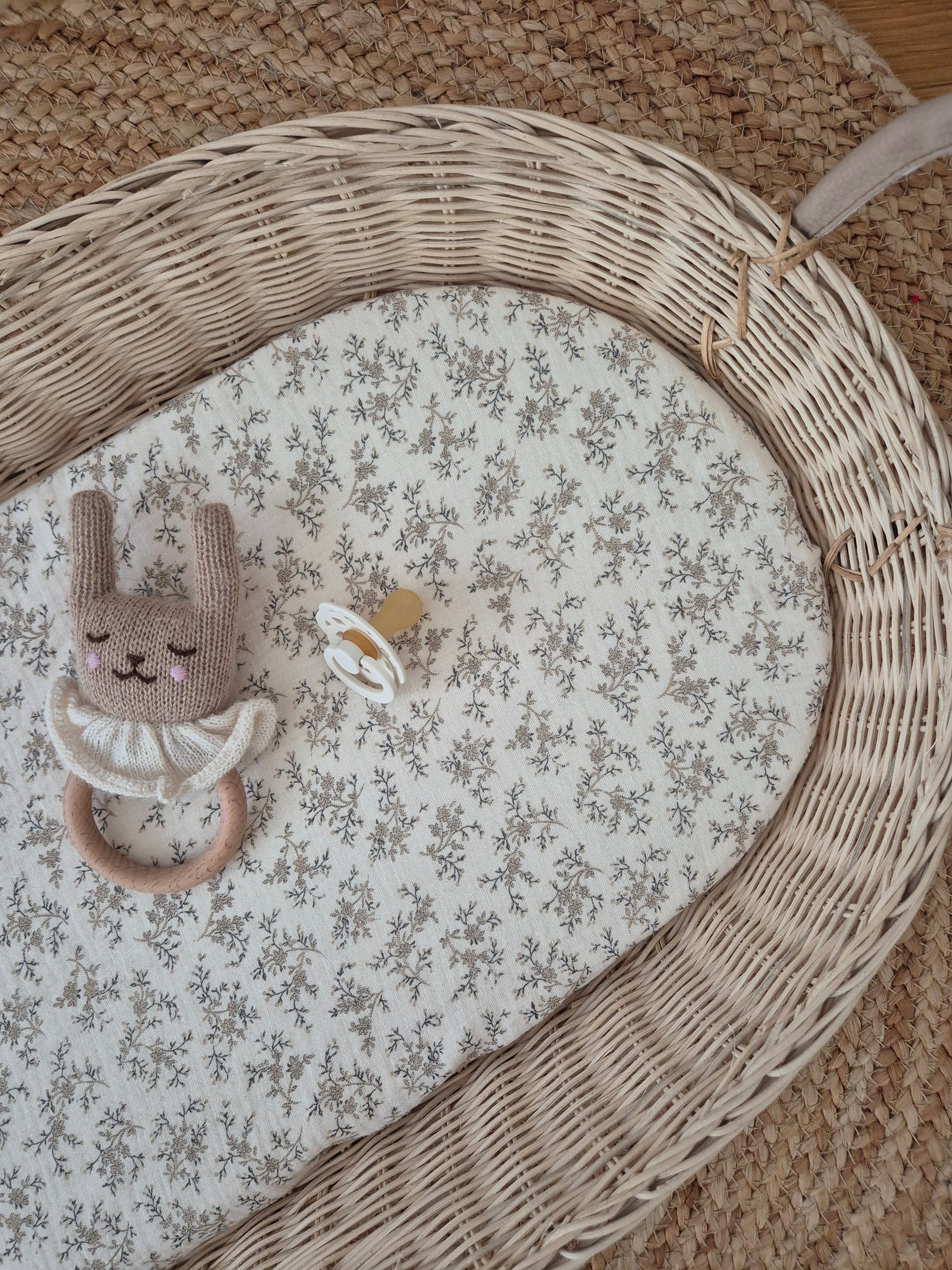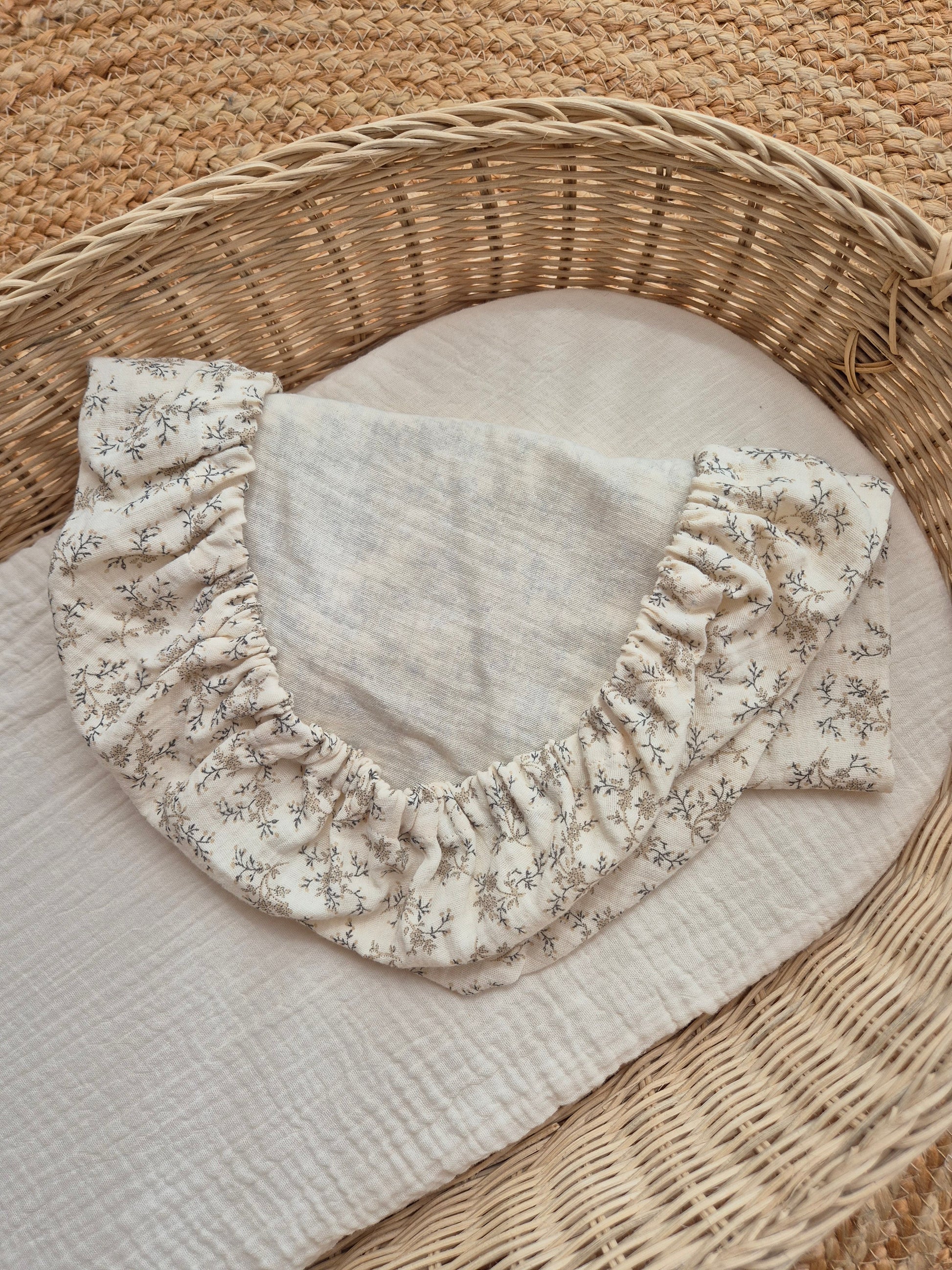 Offrez à bébé un confort tout en douceur avec notre drap-housse pour couffin en gaze de coton, une matière naturellement respirante, douce et respectueuse des peaux sensibles.