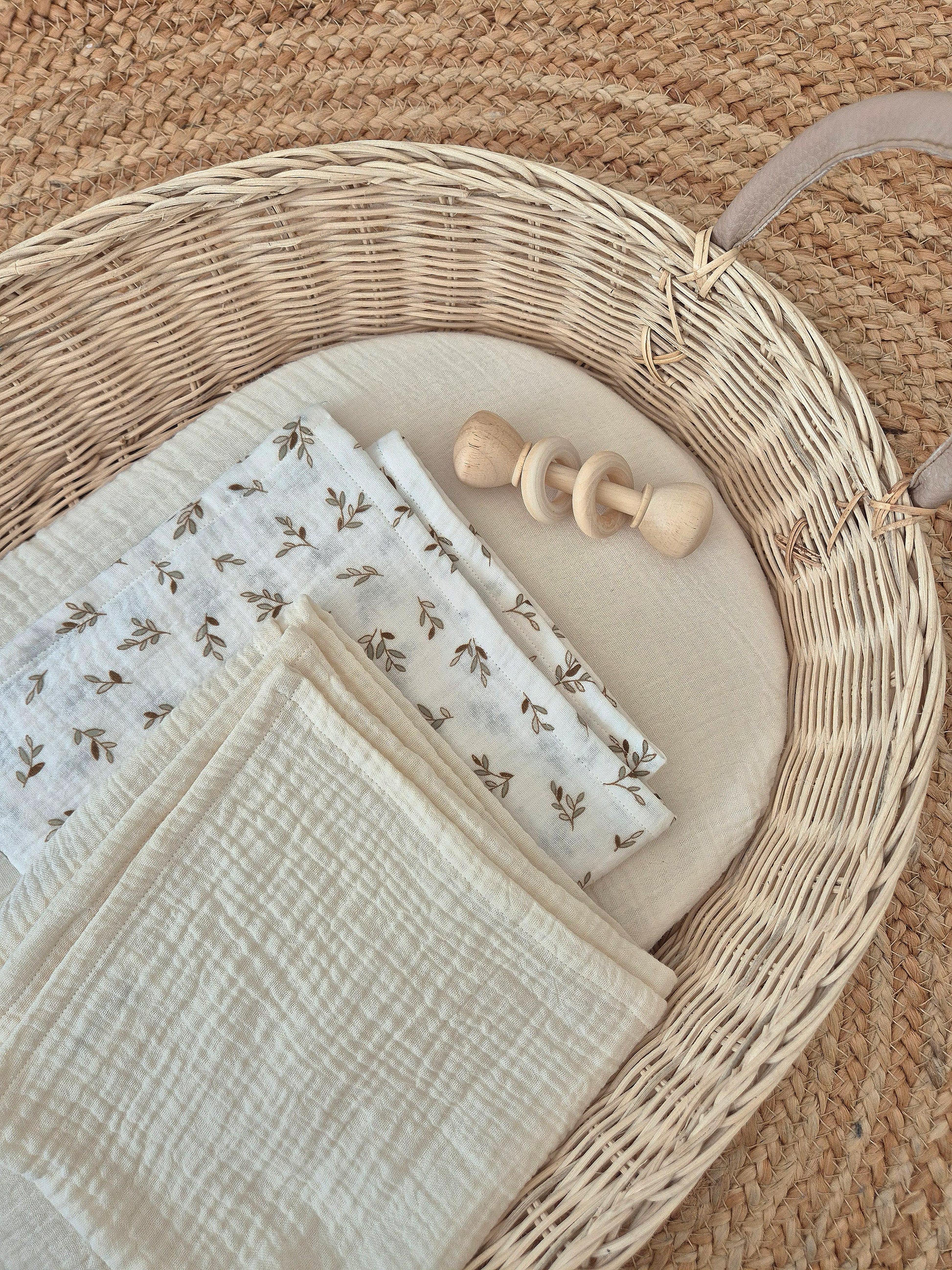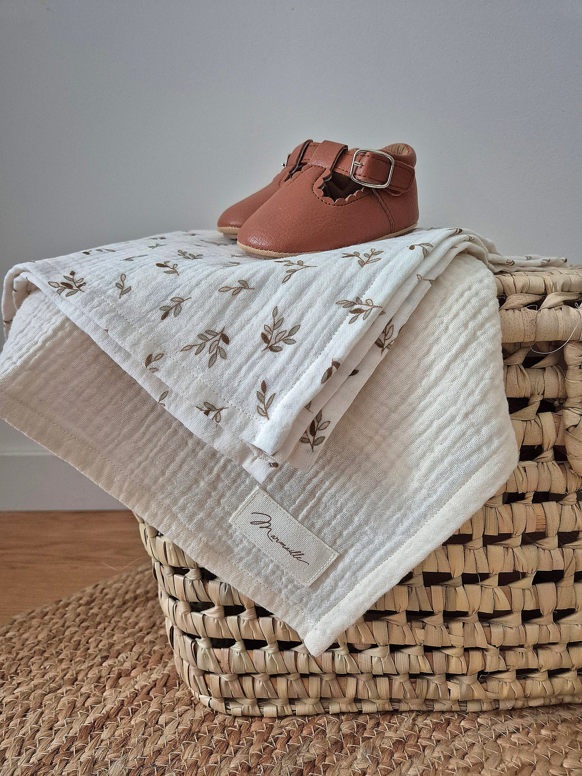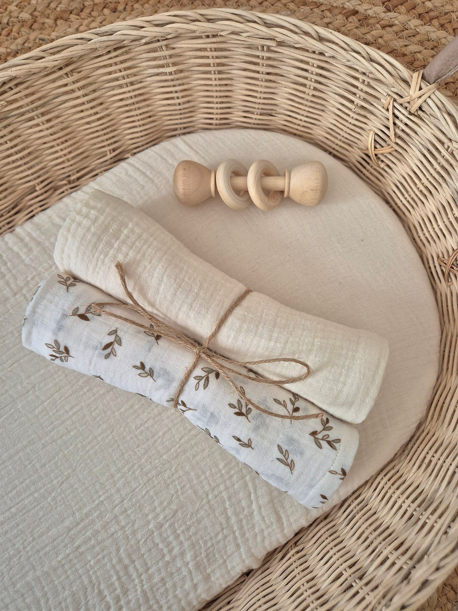 Duo de langes - feuilles/écru