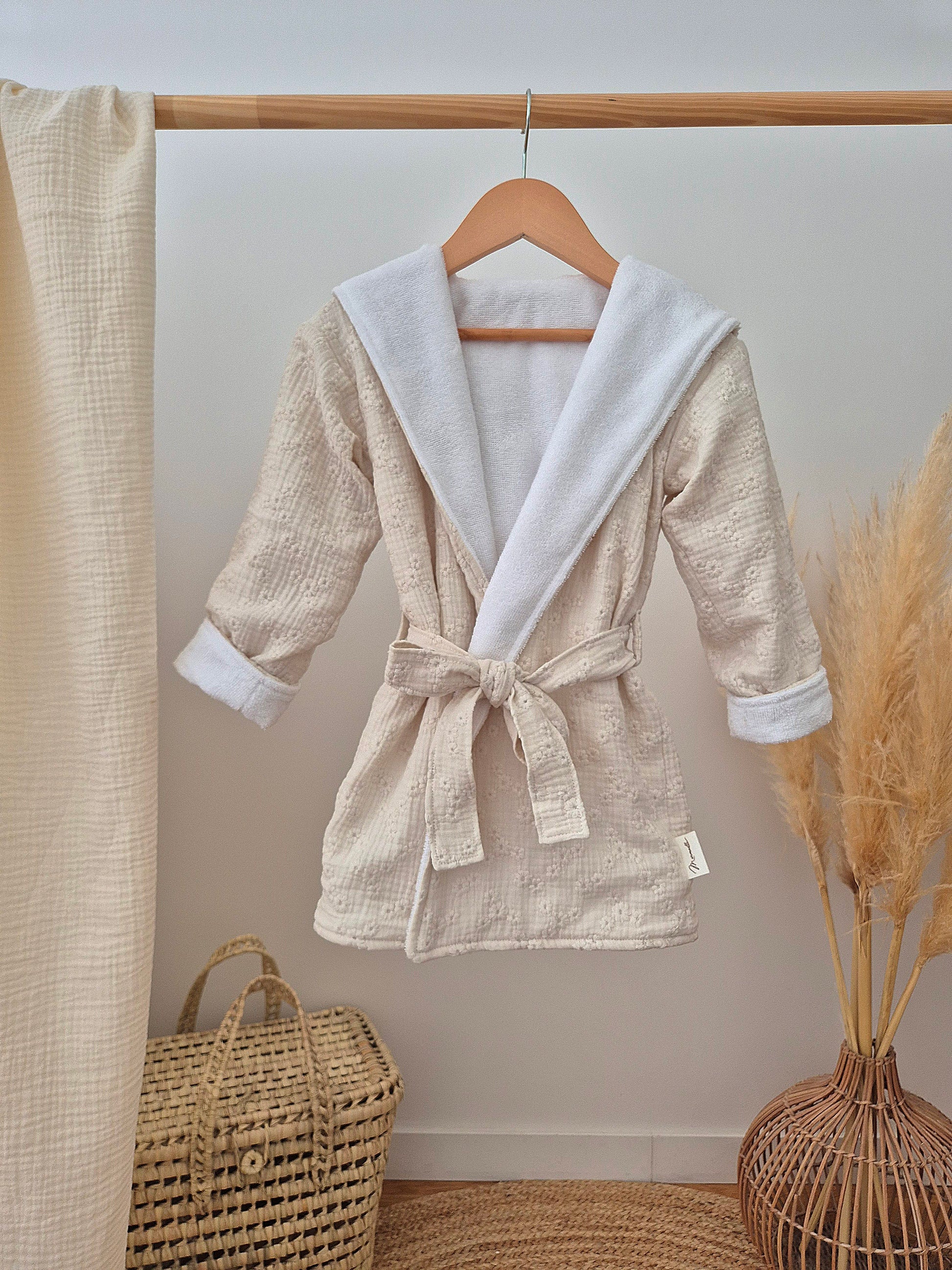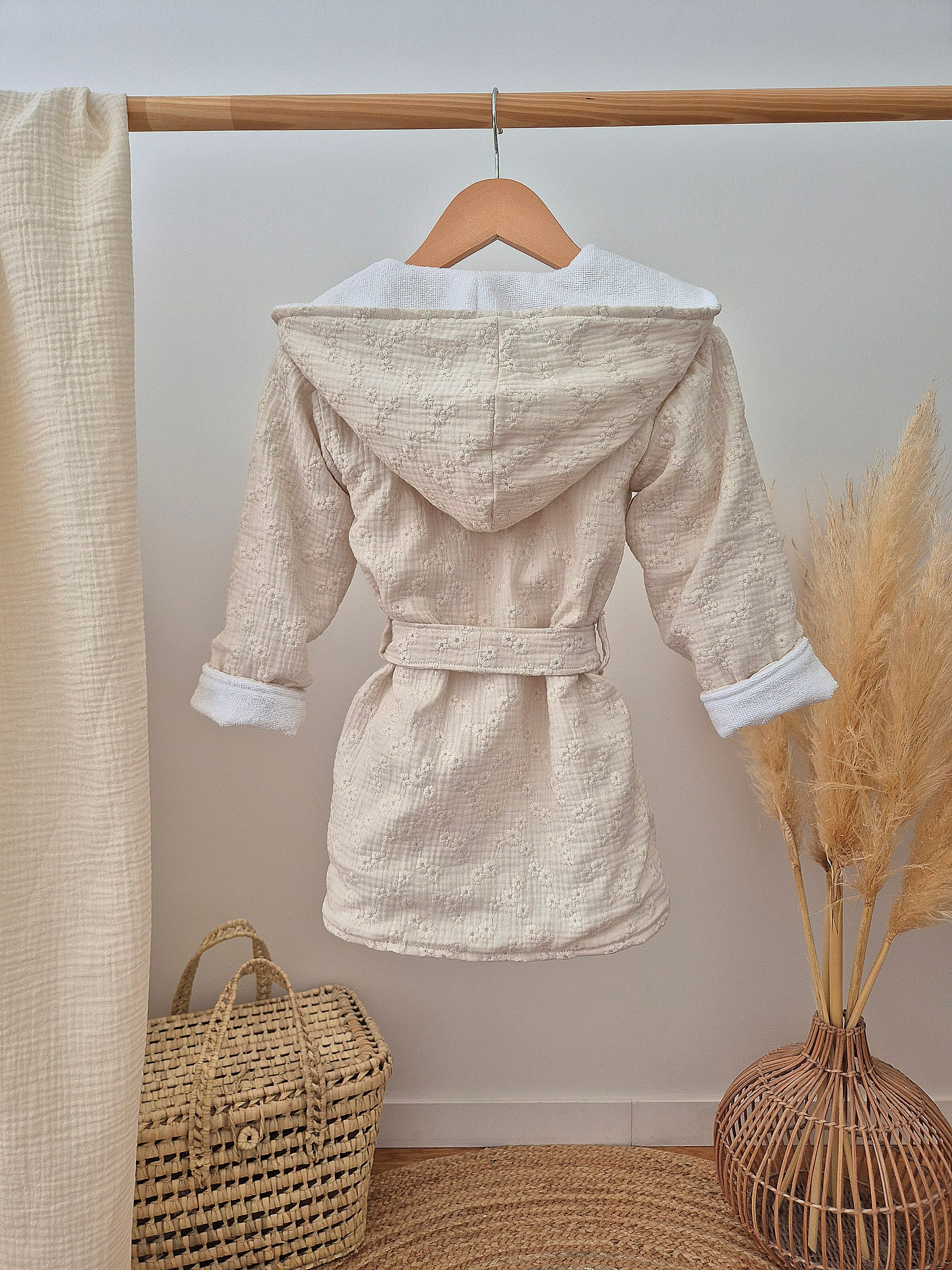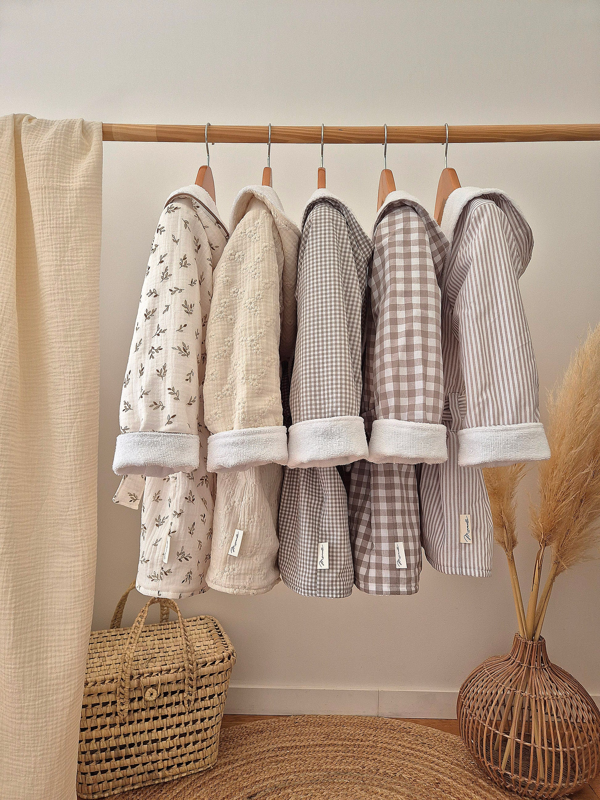 Confortable et pratique avec sa ceinture à nouer, il garde bébé bien au chaud grâce à son éponge toute douce.
