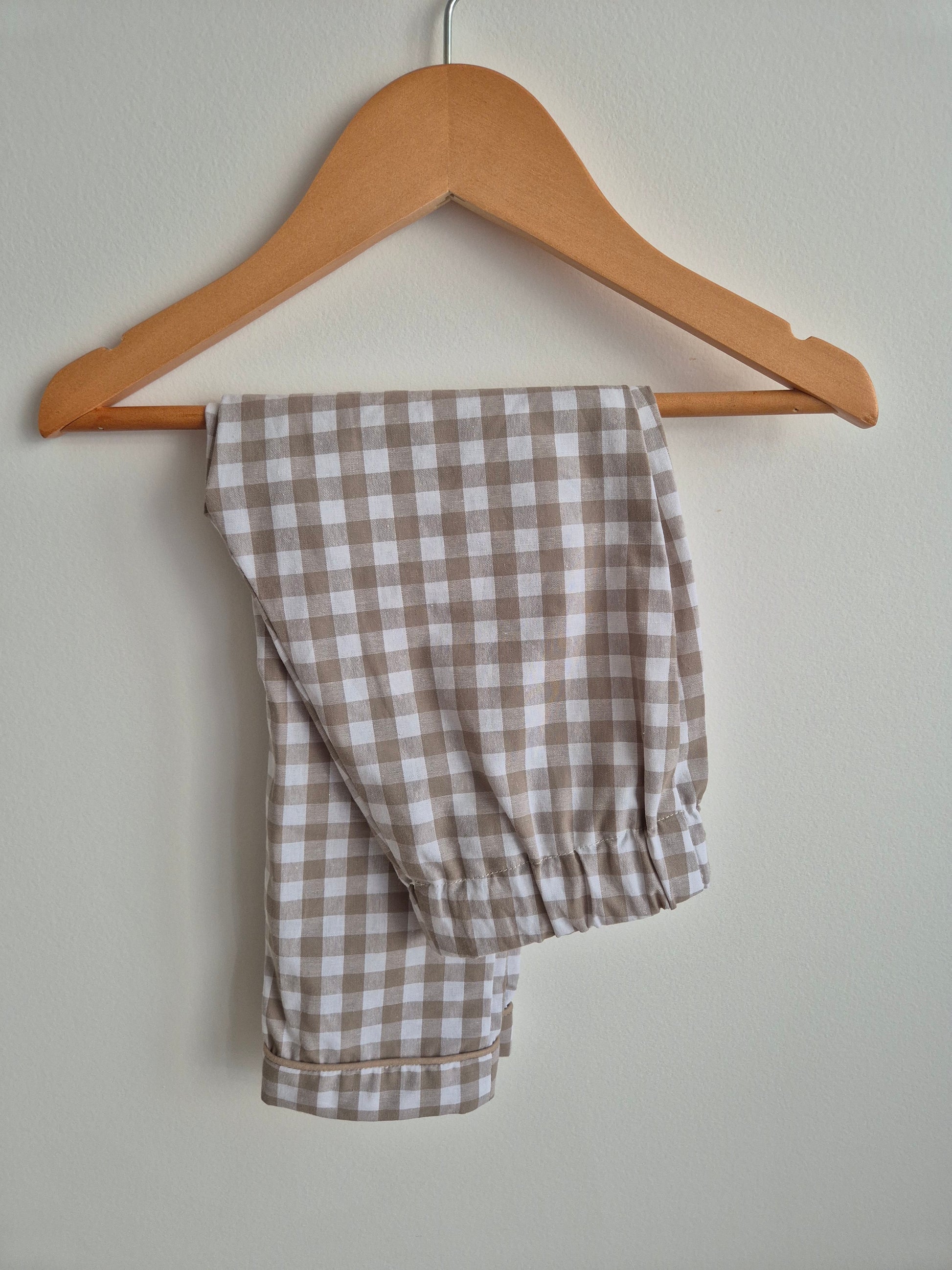 Composé d'une chemise et d'un pantalon à la taille élastiquée, les finitions sont parées d'un joli passepoil.