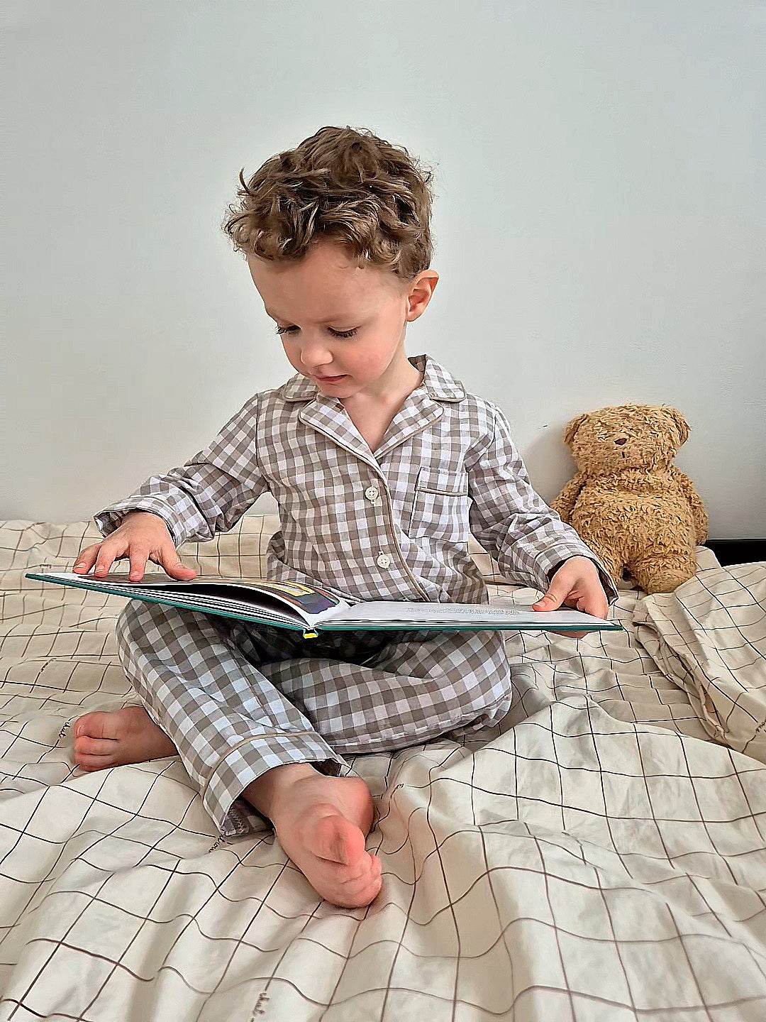 Pensé pour les petits rêveurs, ce pyjama mixte, classique et intemporel, allie confort et élégance.
