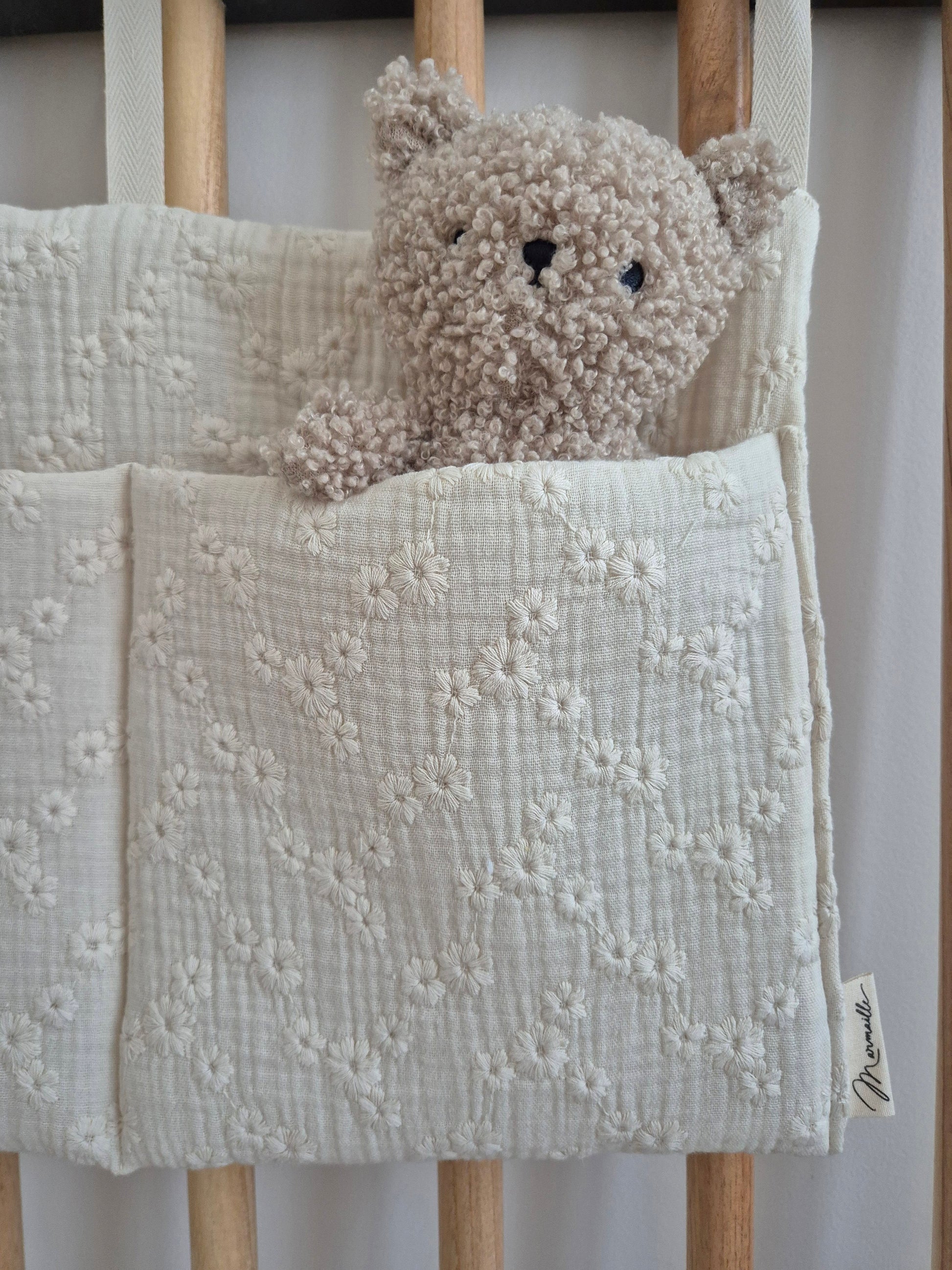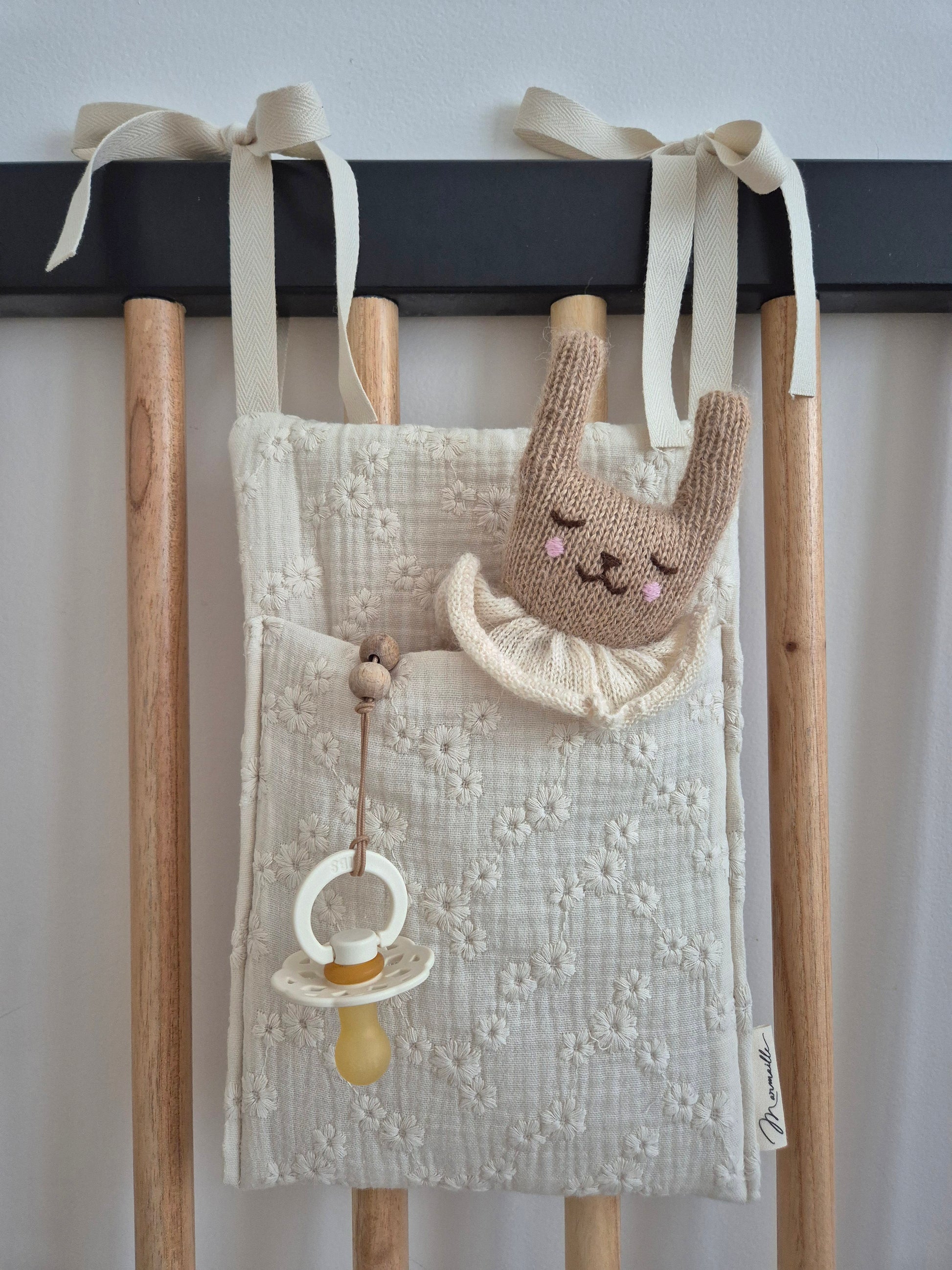 Le range-doudou est l'accessoire parfait pour garder les tétines, doudous et autres essentiels de bébé à portée de main au moment du coucher.