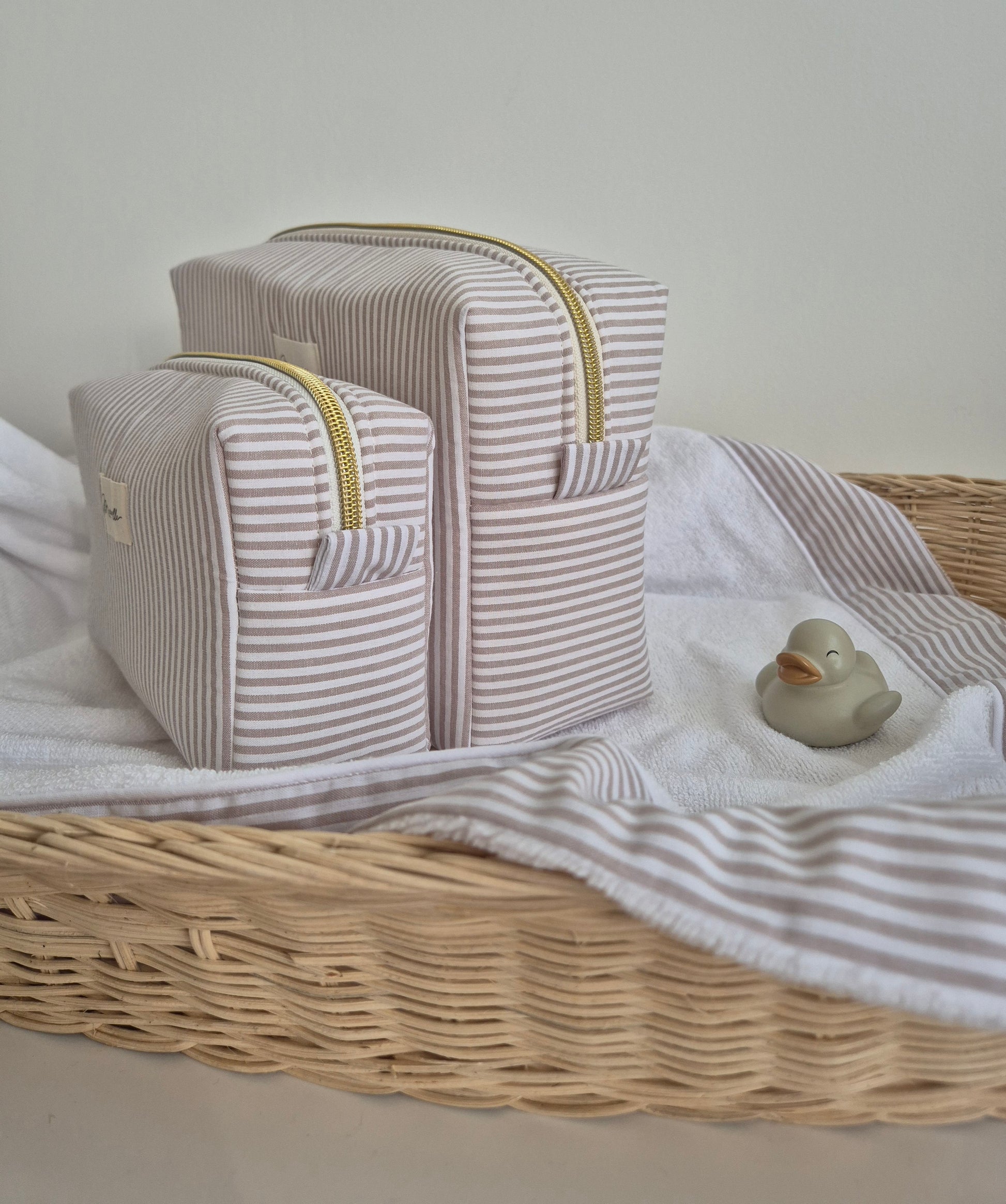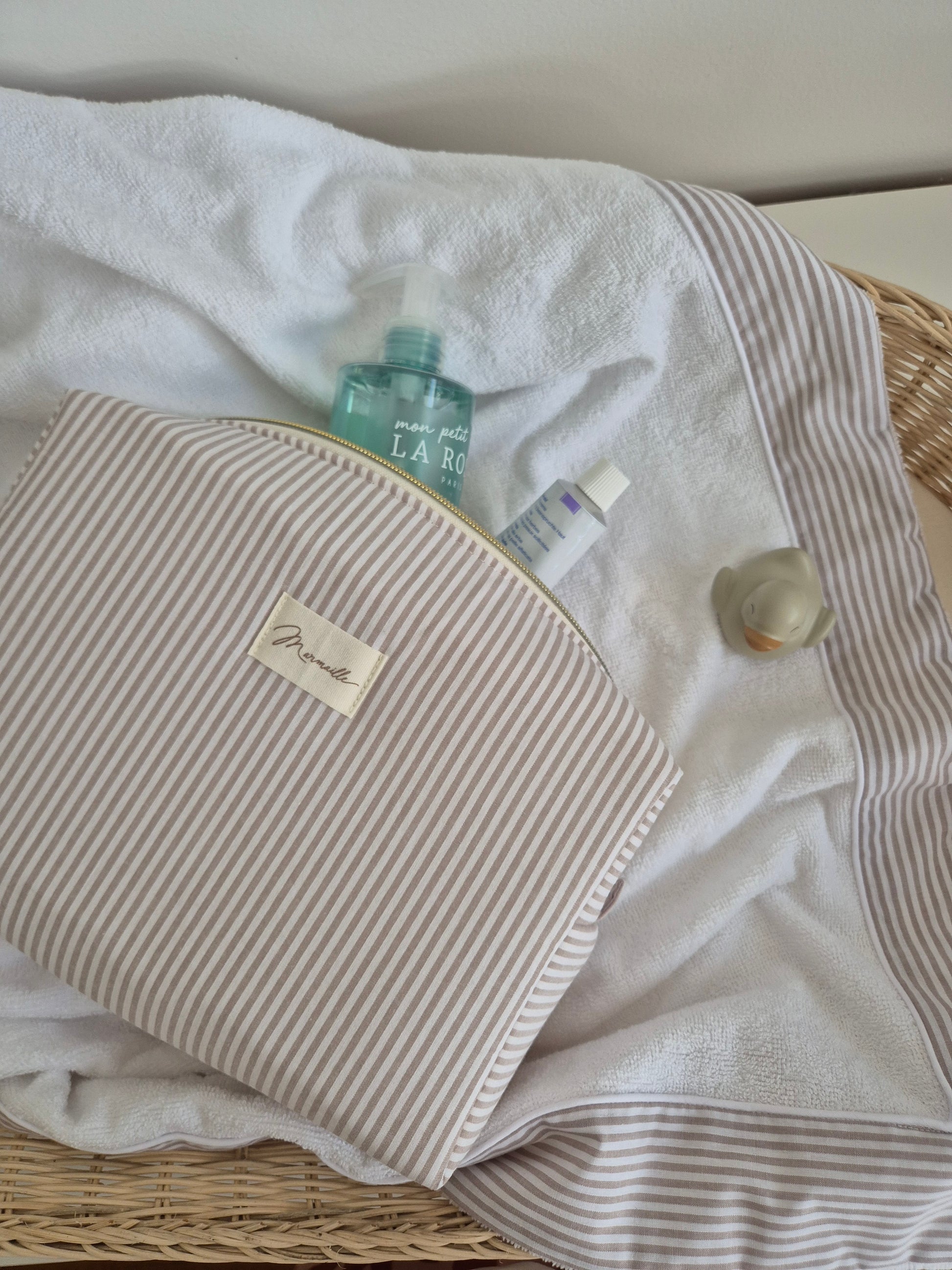 Cette trousse de toilette vous permet de ranger ou transporter toutes les petites affaires de bébé.